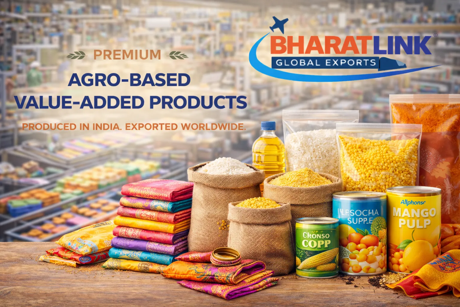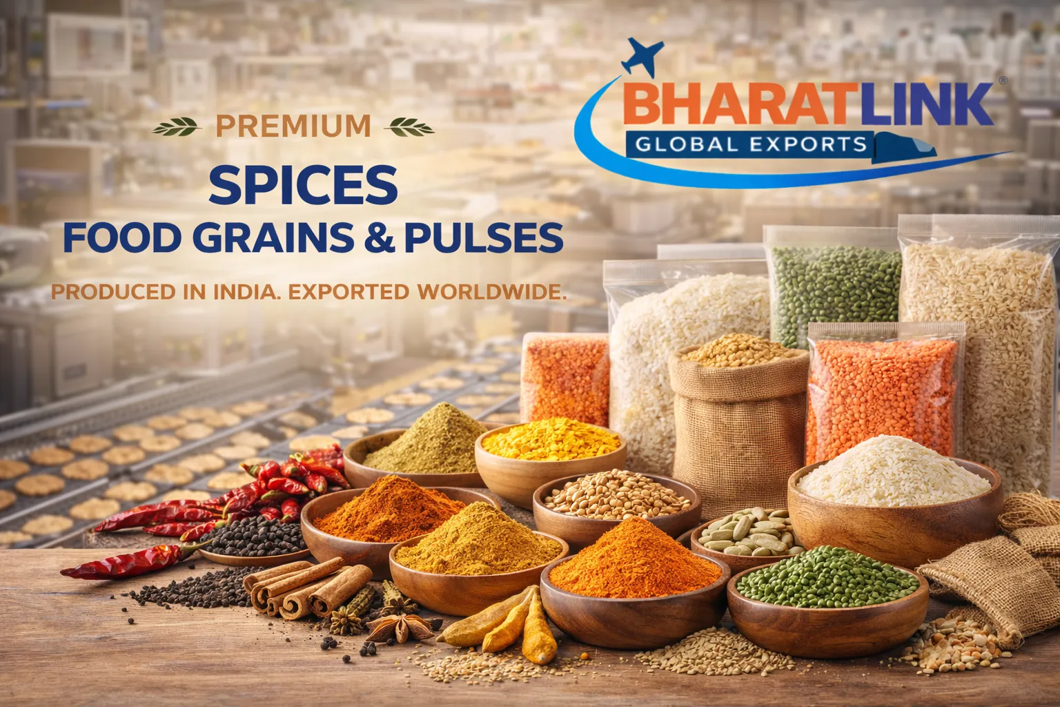 Bharatlink Global Exports is a professionally managed Indian export company specializing in textiles, agro-products, spices, food grains, processed foods, and ready-made garments. We help global buyers source trusted Indian products with consistent quality, timely delivery, and transparent business practices.